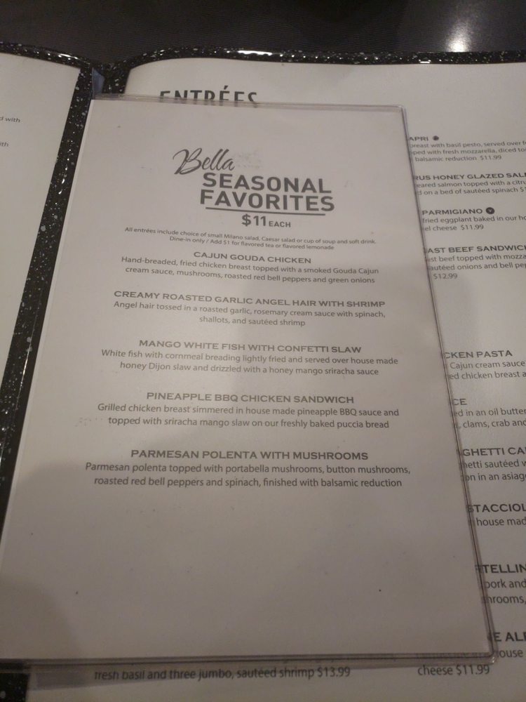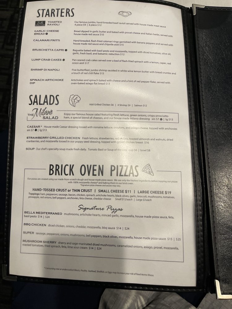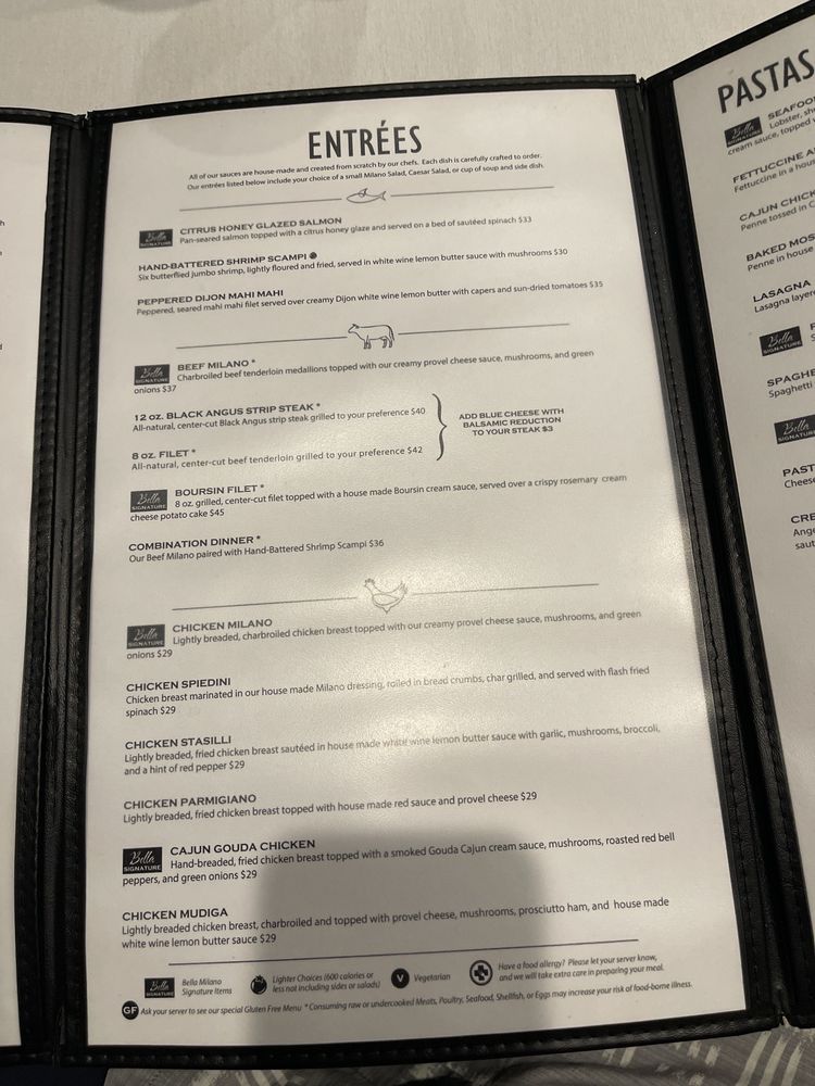 Bella Milano is a versatile dining spot offering a mix of Wine Bars, Steakhouses, and Italian cuisine. Located at 455 Regency Park O'Fallon, IL 62269, this restaurant provides a range of amenities such as reservations, delivery, takeout, and catering services. With a focus on inclusivity, Bella Milano caters to vegetarians and is wheelchair accessible with parking near the entrance. The menu features tantalizing starters like Garlic Cheese Bread and Shrimp Di Napoli, as well as delicious salads such as The Milano Salad and Caesar. For pasta lovers, options like Pasta Three Way and Pasta Con Broccoli will surely satisfy your cravings. The inviting ambiance, attentive service, and mouthwatering dishes make Bella Milano a must-visit for a delightful dining experience.